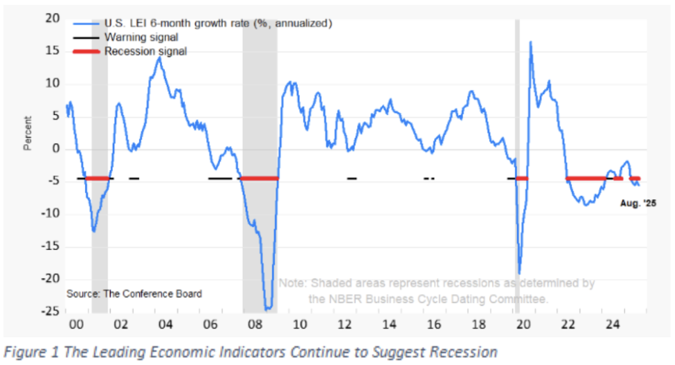 Since ChatGPT launched 35 months ago (on November 30th, 2022), the S&P 500 has a return (including dividends) greater than 70%. Yet for most of the past 36 months, the Leading Economic Indicators index has suggested that the economy has had an elevated risk of recession (see the following chart).